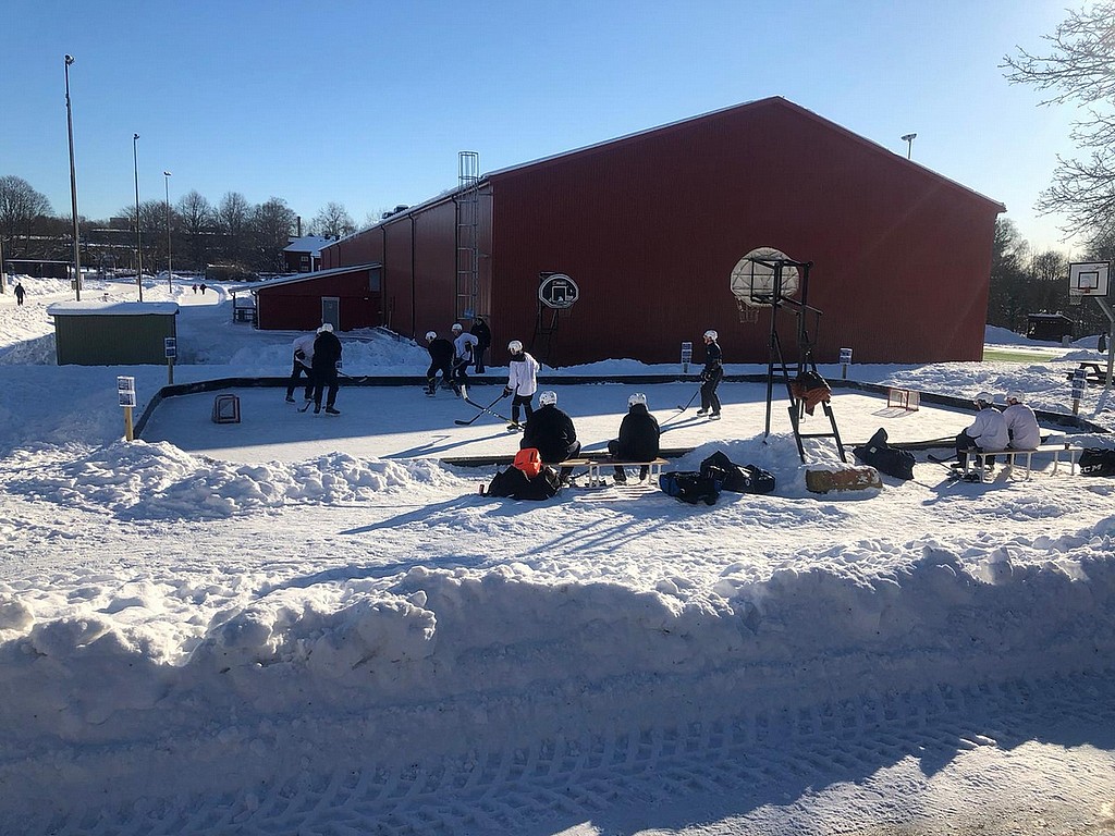 Lagets tredje träning pågår nu på Farsta Winter Classic Arena. Upplägget kallas Attack Tournament och varje byte räknas eftersom lagen tar med sig plus/minus efter varje match. I bakgrunden är elden igång och det bjuds på varmkorv.